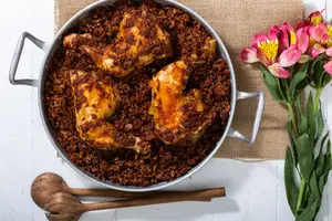 חגיגה אדומה במרכז השולחן: אורז אדום עם עוף בתבלינים