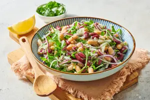 סלט שעועית צבעוני עם קולורבי וארוגולה – פשוט, בריא וממכר
